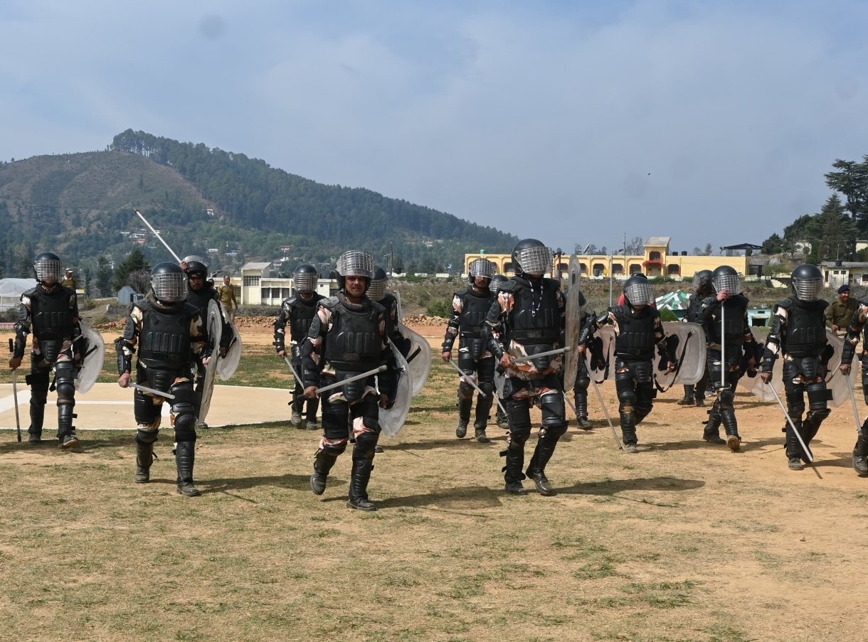 फोटो – लोहाघाट के छमनियां कैंप में क्राउड कंट्रोल का प्रदर्शन करते आईटीबीपी के हिमवीर जवान।