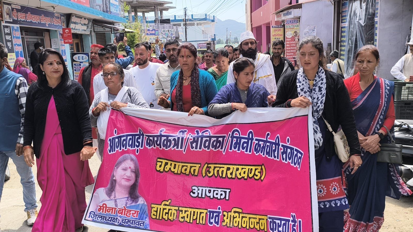 चंपावत में आंगनबाड़ी कार्यकर्तियों का शक्ति प्रदर्शन, सड़कों पर उतरी सैकड़ों महिलाएं—सरकार के खिलाफ बुलंद हुए स्वर।