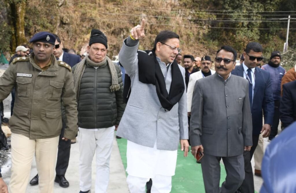 फोटो_ कैंचीधाम बाईपास का स्थलीय निरीक्षण करते मुख्यमंत्री पुष्कर सिंह धामी।