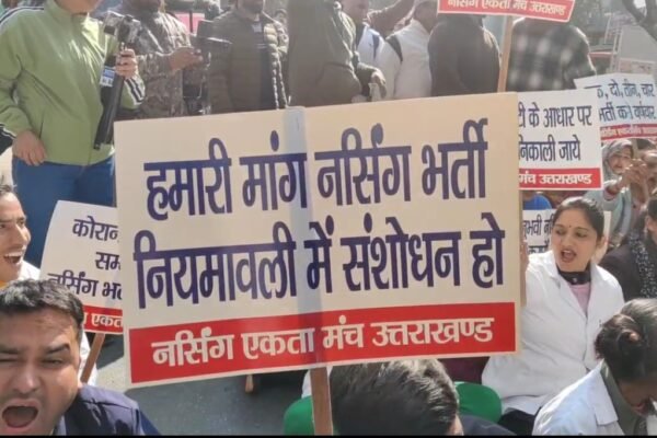 देहरादून। उत्तराखंड नर्सिंग एकता मंच के नेतृत्व में आज बड़ी संख्या में नर्सिंग कर्मचारियों ने अपनी लंबित मांगों को लेकर मुख्यमंत्री आवास की ओर कूच किया। लंबे समय से नर्सिंग भर्ती प्रक्रिया में पारदर्शिता और न्याय की मांग कर रहे कर्मचारियों का आंदोलन अब और तेज होता दिखाई दे रहा है। नर्सिंग कर्मचारी बीते 45…