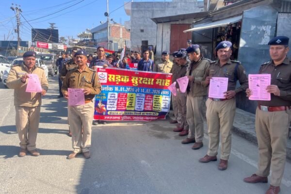 चंपावत:  36वें सड़क सुरक्षा माह के तहत चंपावत में पैदल रोड मार्च, यातायात नियमों के प्रति फैलाई जागरूकता।